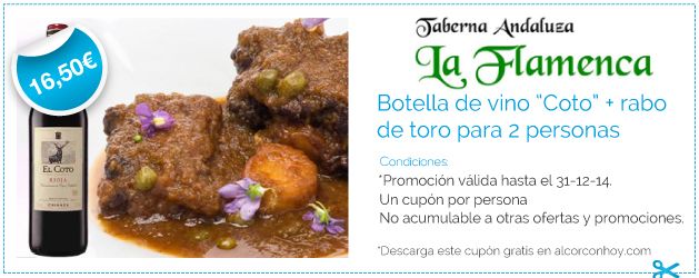 Botella de vino “Coto” + rabo de toro para 2 personas por 16,50 € en La Flamenca