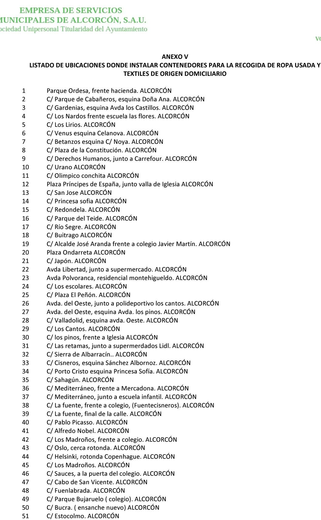 Este jueves, 6 de febrero, se firmará el contrato con HUMANA para la instalación de contenedores de recogida de ropa usada y textil en Alcorcón. En concreto serán 85 contenedores que se repartirán por toda la ciudad. Con este contrato Alcorcón cumple con la legislación europea en relación con la recogida selectiva del residuo textil. Estos contenedores están destinados a la recogida de ropa usada y residuos textiles de origen domiciliario. Alcorcón instala 85 contenedores para la recogida de ropa usada y textil. El contrato ha sido adjudicado, mediante un proceso de contratación pública, a “HUMANA: Fundación para el Pueblo”.