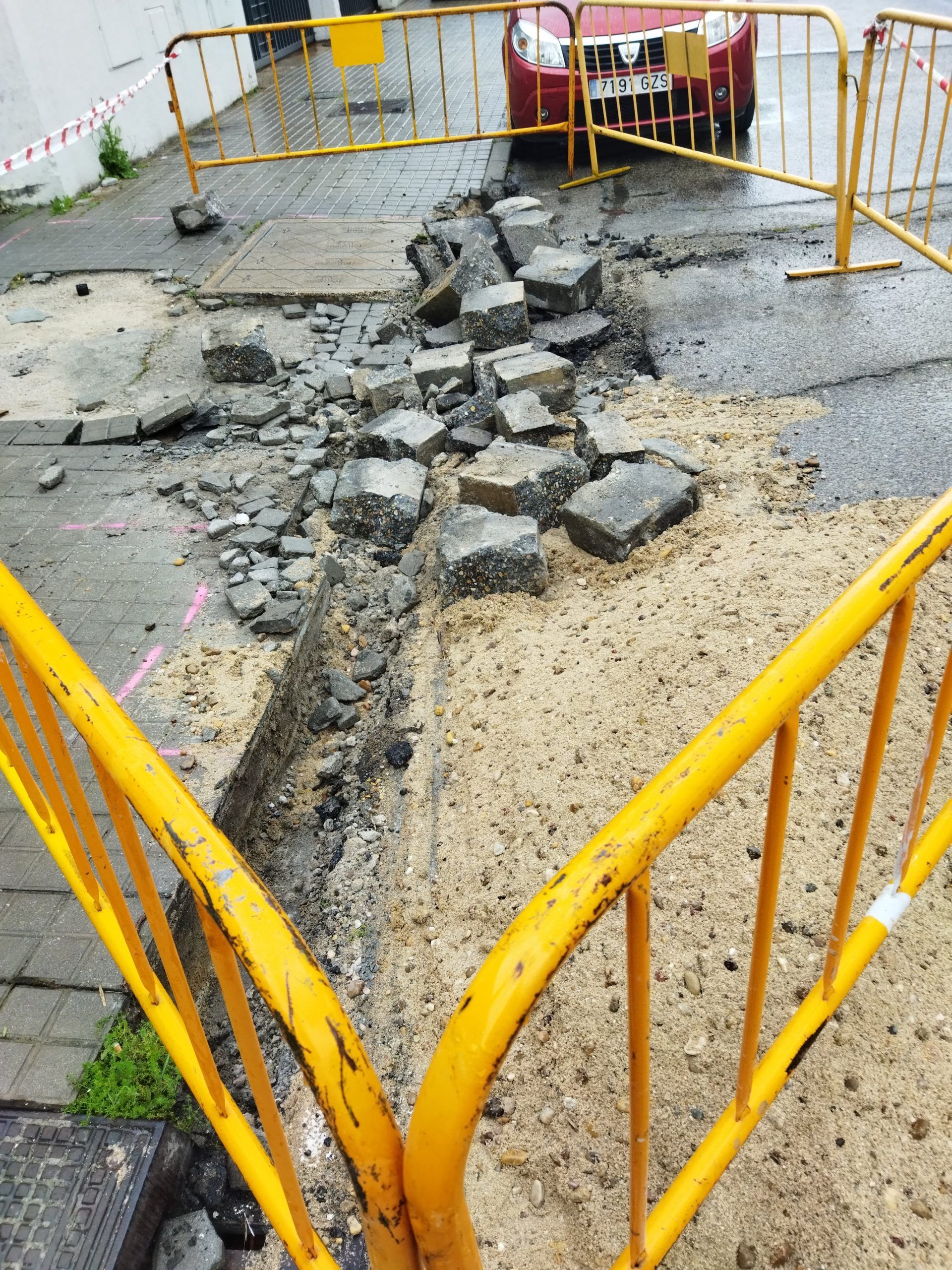 En otras calles como la calle Electrónica o Físicas los bordillos estaban muy dañados y los agujeros eran elementos que regatear según se paseaba. Se han tenido que hacer trabajos de sustitución del adoquinado y de reparación de bordillos muy notable.