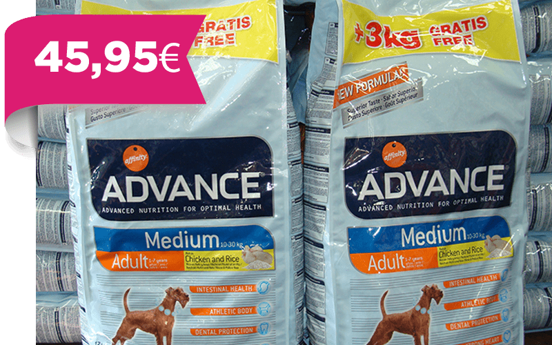 Sacos Advance medium adulto de 14 Kg. + 3 Kg. gratis por 45,95 €.