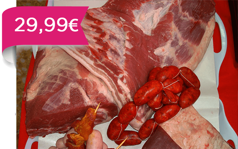 Oferta especial barbacoas 6 kilos + 1 kg. chuletas de aguja + 1 Kg. panceta fresca + 1 Kg. chorizos de pincho + 1 Kg. blanquitos de pincho + 1 Kg, churrasco de ternera + 1 Kg. pinchos morunos + El lote de 6 Kilos por 29,99 €