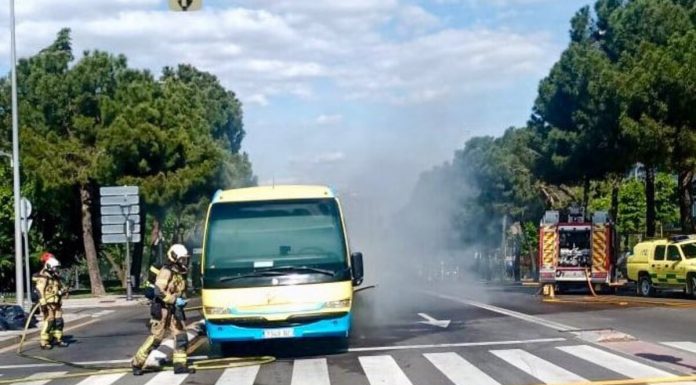 Las autoridades tuvieron que intervenir en el lugar de los hechos. Se incendia un autobús en plena vía en Alcorcón
