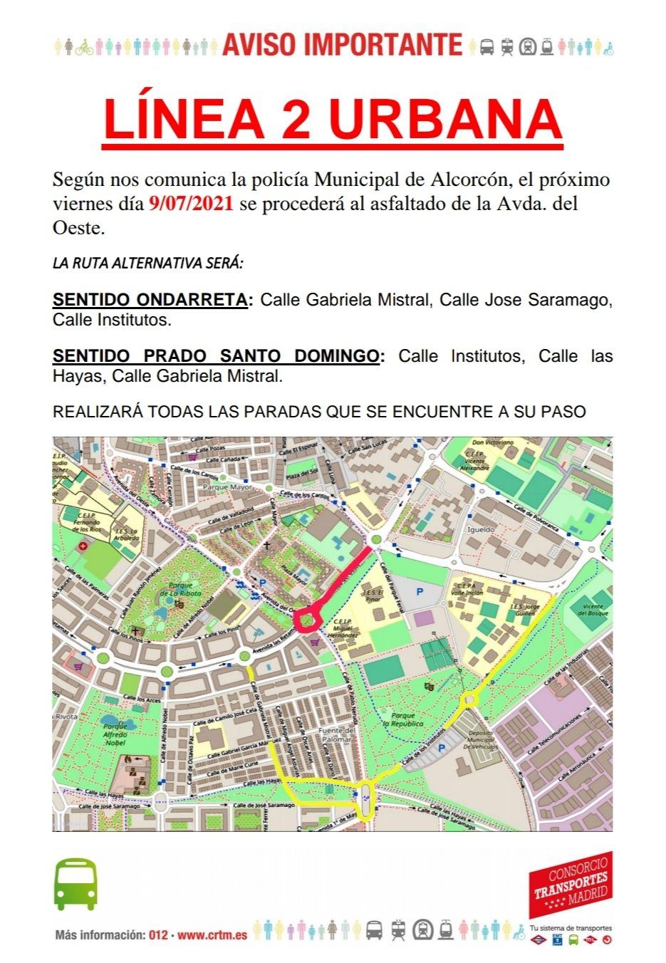 Cortes de tráfico y desvío de autobuses en Alcorcón