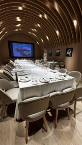 Cada uno de los 19 reservados cuenta con un nombre propio en honor a una determinada bodega y varían en cuanto a su aforo -algunos son para diez personas, otros para seis…-, el cual se puede ir adaptando. Asimismo, todas estas salas disponen de una acústica optimizada para la privacidad. «Lo que hemos buscado es el ruido cero cero. Nosotros lo que creemos es que la gente cada vez quiere menos ruido. Queremos más privacidad, queremos más exclusividad y queremos estar en un entorno donde estén las personas que queremos que estén con nosotros y hablar tranquilamente lo que queramos hablar sin que haya ningún conflicto», comenta Óscar García.