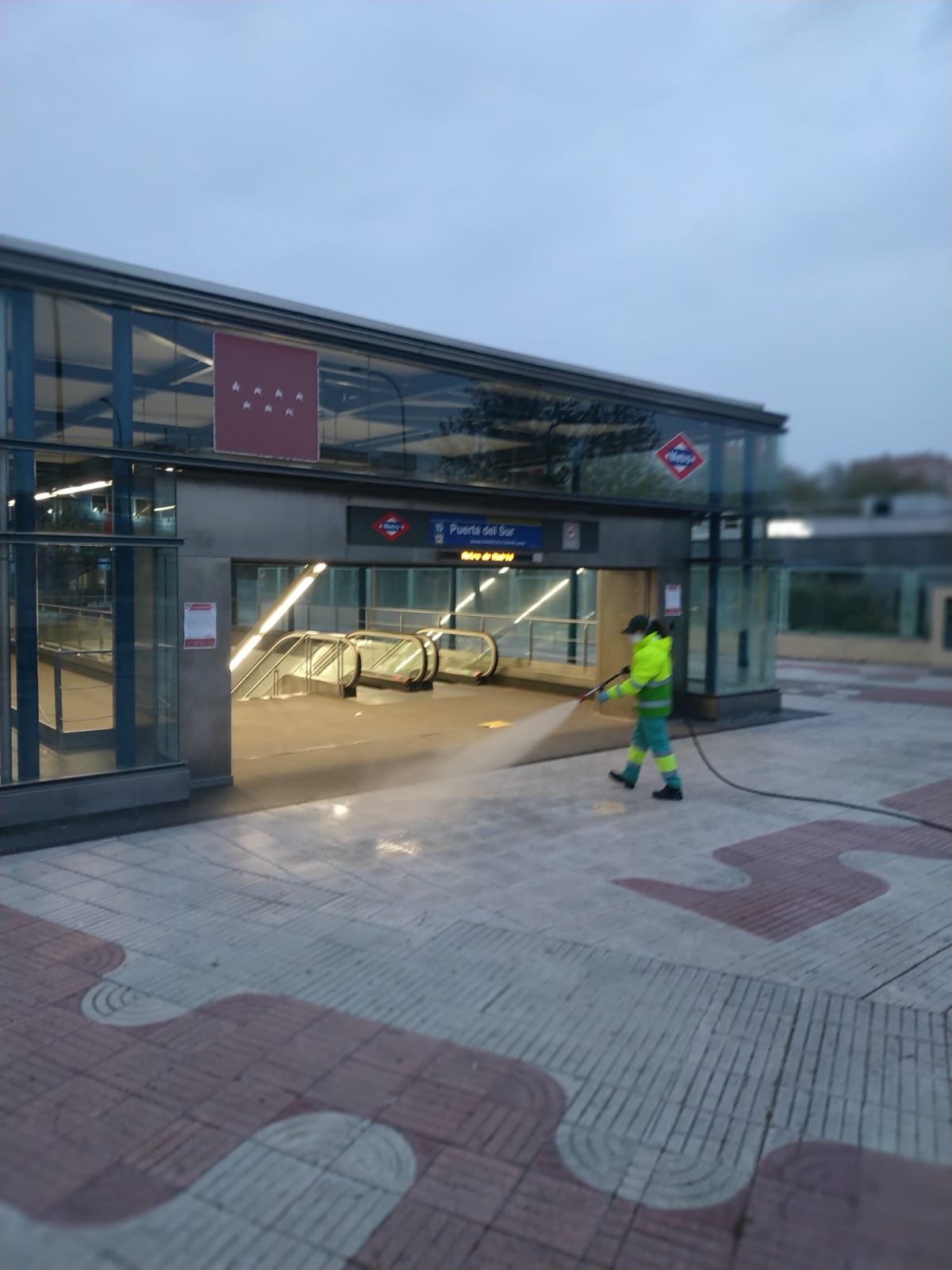 Los profesionales de ESMASA continúan con la desinfección de las calles. Jesús Santos agradece la lucha contra el coronavirus a los trabajadores de ESMASA Alcorcón.