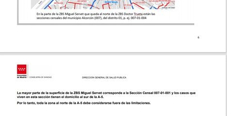 La mayor parte de la superficie de la ZBS Miguel Servet corresponde a la Sección Censal 007-01-001 y los casos que viven en esta sección tienen el domicilio al sur de la A-5. Por lo tanto, toda la zona al norte de la A-5 debe considerarse fuera de las limitaciones. Según la último modificación de la Comunidad de Madrid. Al norte de la citada A-5 se encuentra una importante zona comercial de Alcorcón a la que se puede ir sin restricciones. Establecimientos como Tres Aguas Alcorcón se encuentran en esa zona norte de la A5. No tendremos restricciones de movilidad pero sí tenemos que seguir cumpliendo todas las medidas preventivas de salud contra el COVID-19 si estamos en estos establecimientos.