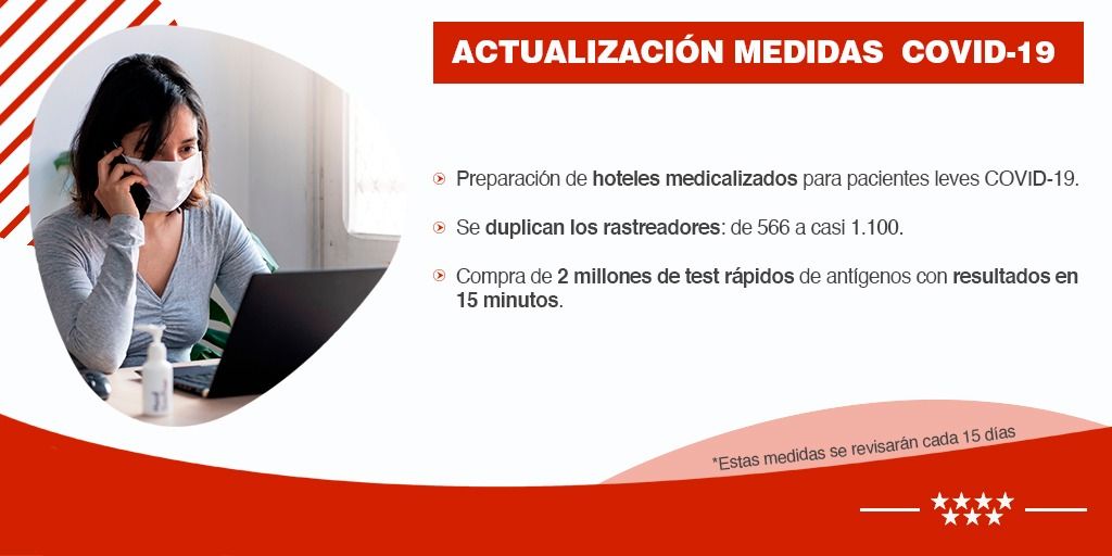 La Comunidad de Madrid, además, está estudiando la posibilidad de volver a medicalizar hoteles o espacios públicos para facilitar el aislamiento de las personas que puedan haberse infectado y deban mantener cuarentena.
