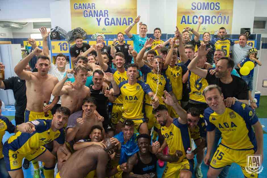 Desde que el colegio murciano Lax Franco pitó el final del partido entre Alcorcón y Castellón antes de las 22:00 se descorchó la botella de la felicidad en la localidad madrileña. Primero sobre el terreno de juego con invasión de campo incluida y después en la Fuente de Los Cantos antes más de 1500 personas que jalearon a sus nuevos héroes. Aquellos que escribieron una nueva página en letras de oro en la historia de la AD Alcorcón. Pero los festejos por el ascenso continuaron el domingo con una rúa que recorrió la ciudad desde el Estadio de Santo Domingo hasta el Ayuntamiento de la ciudad. Por el camino más de 3.000 alcorconeros aplaudieron a los pupilos de Fran Fernández en el autocar descapotable que los llevaba. Además de jugadores y cuerpo técnico también estaban los empleados del Club. Resaca teñida de amarillo en Alcorcón.
