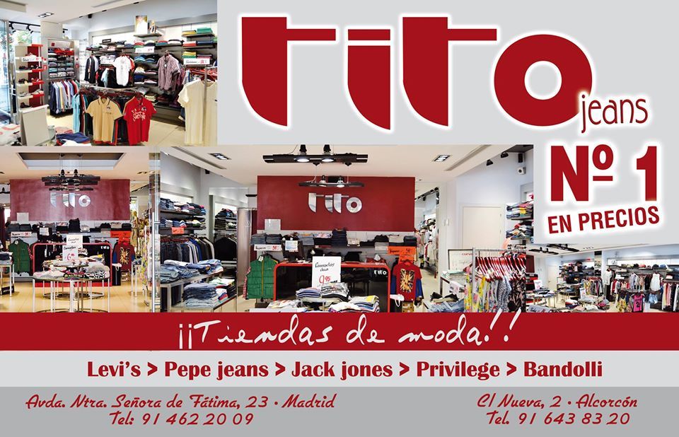 Tito Jeans siempre ha estado ubicado en la calle Nueva de Alcorcón, si bien es cierto que cuando el primer Alberto Sánchez abrió las puertas de su negocio el local era la mitad de grande que ahora. La familia Sánchez unión la zapatería colindante cuando este negocio cerró los Sánchez compraron el local de al lado. A Tito Jeans los podemos seguir en Facebook e Instagram “vendemos moda joven tanto de hombre como mujer. Vaqueros, vestidos, faldas, chaquetas, camisetas, polos, camisas… Tenemos desde una oferta de ropa moderna hasta otra un poco más clásica. Por eso tenemos compradores de varias generaciones. Personas que nos compraban con 20 años y ahora vienen con sus hijos”. La prenda estrella según Alberto Sánchez hijo “Los vaqueros. El pantalón de vaquero tenemos un surtido amplísimo de hombre y de mujer tanto en tipos como en tallas. En hombre vendemos mucho en polos y camisetas también. En mujer vestidos, blusas o chaquetas. En verano en mujer especialmente los shorts y las faldas”.