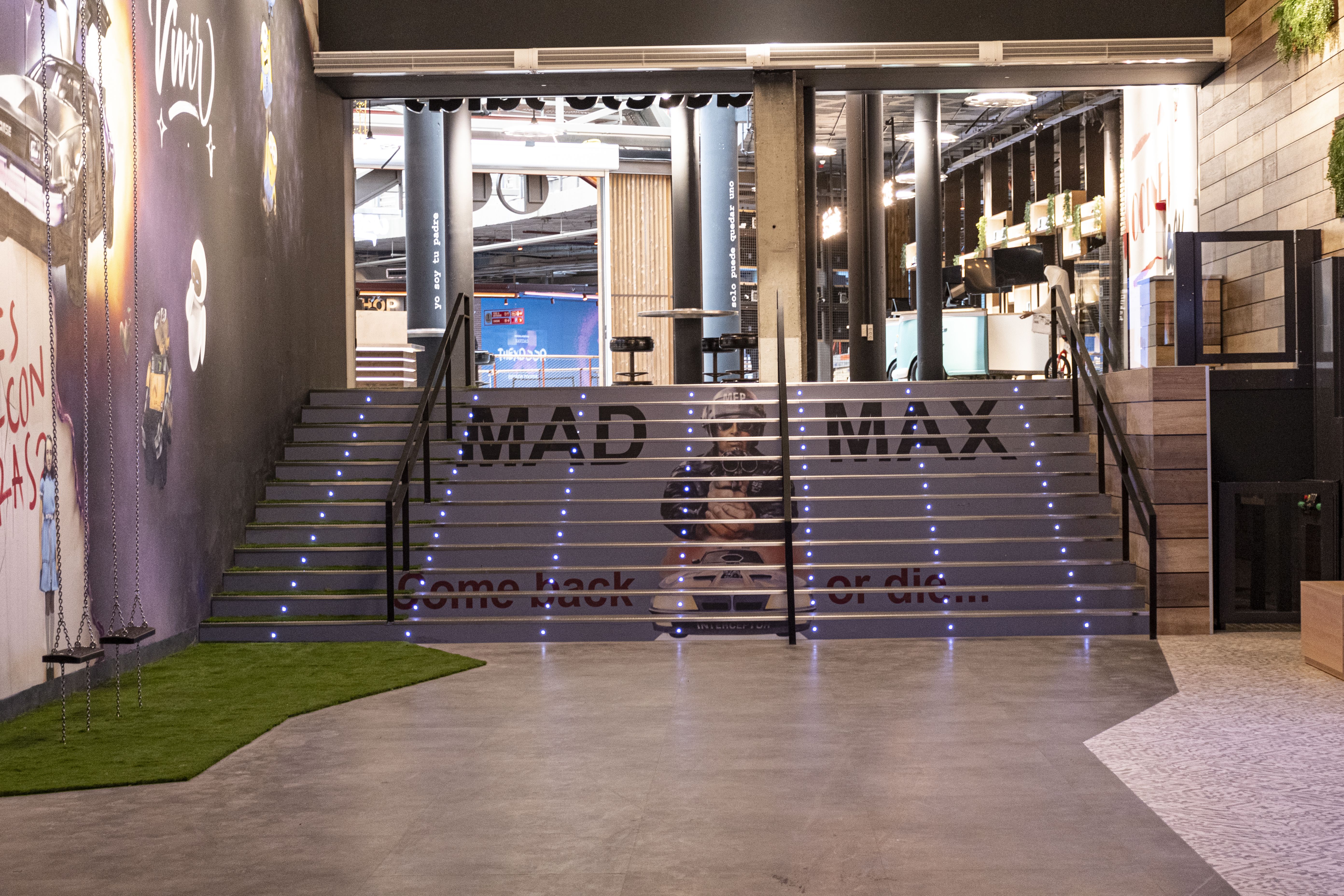 La entrada a estos nuevos cines supone abrir un álbum personal de recuerdos que todos tenemos del cine. En el vestíbulo nos saluda E.T. por ejemplo. También contaremos con el mural de cine en grafitti más grande de España, con imágenes de El Resplandor, los Minions, Wall-E… El vestíbulo está lleno de frases históricas del cine.